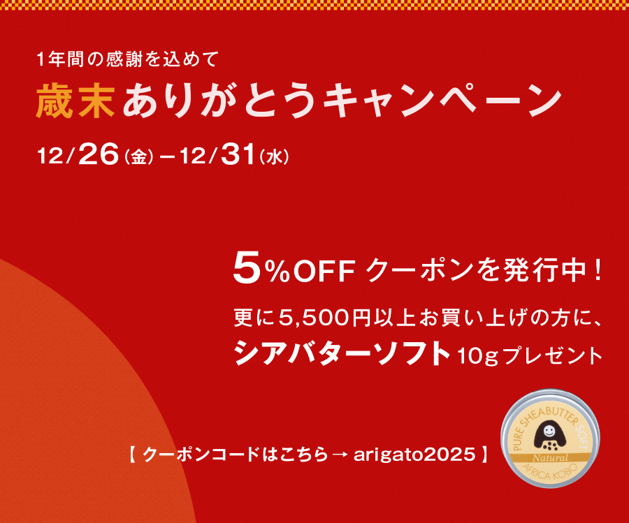 今年もシアバターをご愛用いただき、本当にありがとうございます。